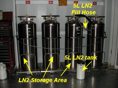 - Fill out the LN2 fill log sheet on the side of the storage cabinet where LN2 saftey equipment lives & update the white status board in the Ops building.
