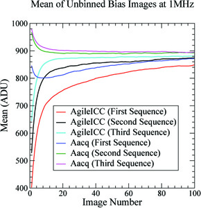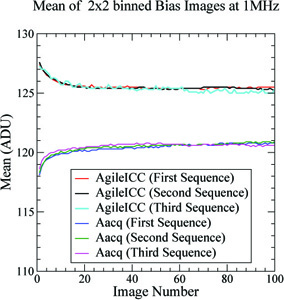 Also please be aware -- It has been determined that the first few images of a given sequence (a sequence includes a sequence of one, aka a single exposure) may not be stable. A simple workaround is that whenever an observer requests unbinned biases at 1MHz, all we have to do is throw out the first 10-20 images or so. Users should always take at least 30 bias frames if using fast read rate.