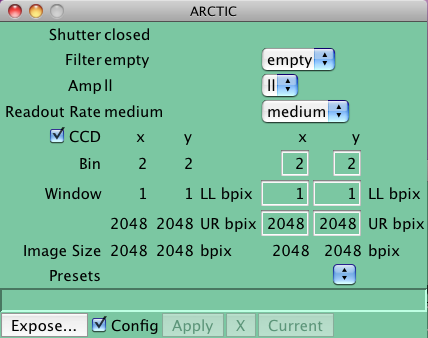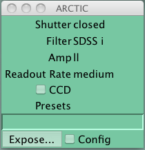 ARCTIC exposures are taken using the Expose window which is opened using the Expose button in the ARCTIC configuration window. The expose gui looks like: