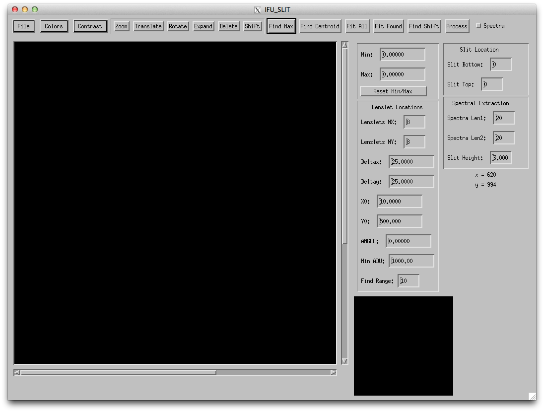 - Start up IDL and type "ifu_slit" at the prompt. This will open up a GUI (may take a few moments). At first, the image window will be empty (see Figure 1).