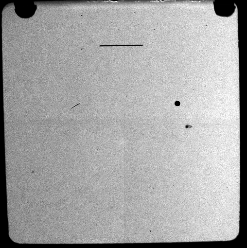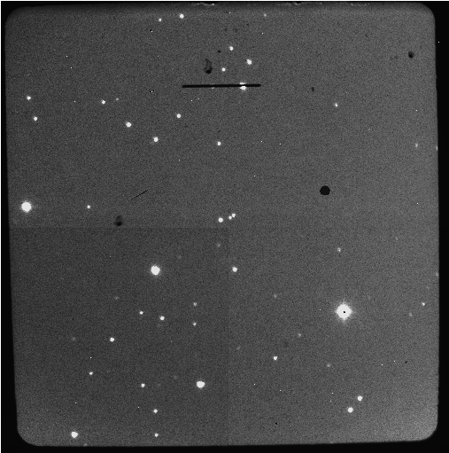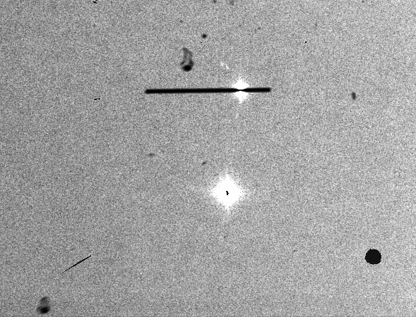 - Move telescope to target. Typically the source will appear within a few arcsecond of the slit. Since the field of view is 4'x4' it is unlikely the target will fall outside the field of view. (Note that the slit mirror has a few defects, one of which is close to the primary slit (1.1 arcsec)). On occasion, the target may land on the defect (or in the slit itself) rendering the source invisible if the target is faint. If the desired source is not evident, a few arcsecond offset may turn it up.