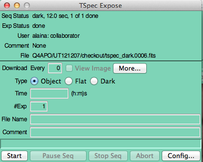 Like DIS, TripleSpec uses independent TUI windows to position the source on the slit and acquire the spectra.